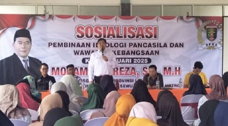 Lampung– Anggota DPRD Provinsi Lampung Muhammad Reza mengadakan kegiatan sosialisasi Pembinaan Ideologi Pancasila dan Wawasan Kebangsaan (IPWK) di Pekon Sri Rahayu Kecamatan Banyumas, Kabupaten Pringsewu, Kamis (30/1/2025).