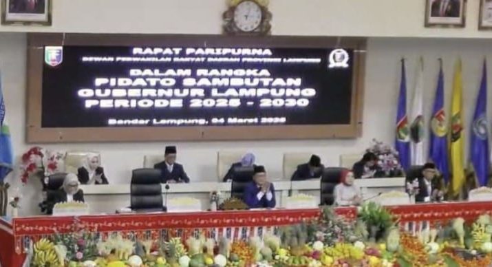 Lampung – DPRD Provinsi Lampung menggelar Rapat Paripurna dalam rangka Pidato bersama Gubernur Lampung periode 2025-2030, Selasa (04/03/2025).