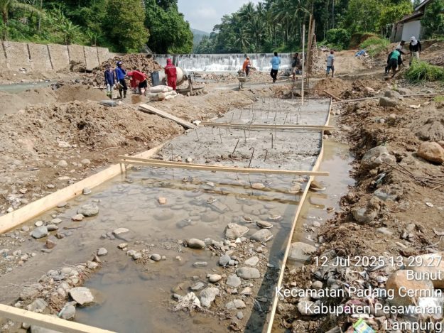 Pesawaran – Proyek pembangunan tanggul Sungai Way Ratai di Desa Bunut, Kecamatan Padang Cermin, Kabupaten Pesawaran, yang dibiayai dari APBD Provinsi Lampung Tahun Anggaran 2025 senilai Rp2,7 miliar, disorot tajam oleh LSM Forum Komunikasi Anak Lampung (FOKAL).