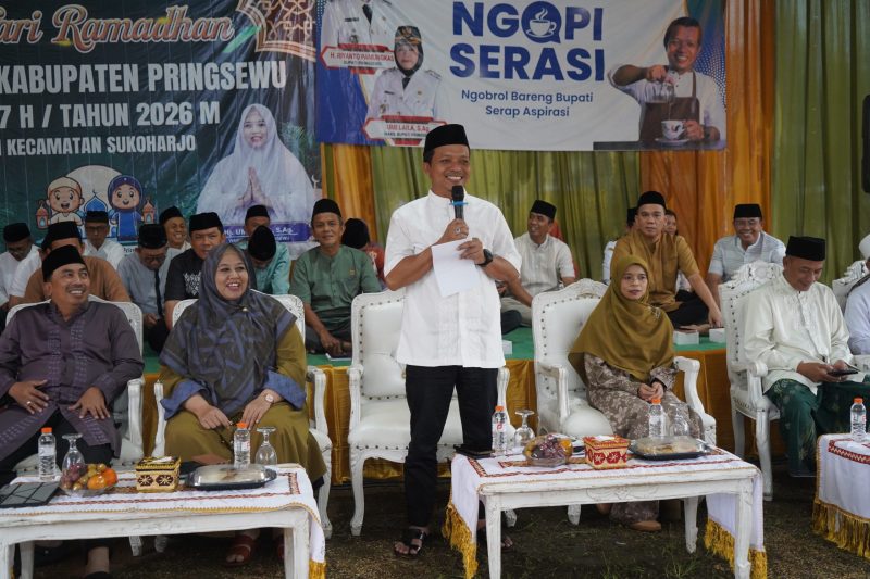 Pringsewu – Pemerintah Kabupaten Pringsewu kembali menggelar kegiatan Safari Ramadhan yang dirangkaikan dengan program **Ngobrol Bareng Bupati Serap Aspirasi (Ngopi Serasi) Edisi ke-23**, yang berlangsung di **Masjid Jami Al-Iman, Pekon Sukoharjo II, Kecamatan Sukoharjo**, Rabu (11/3/2026).